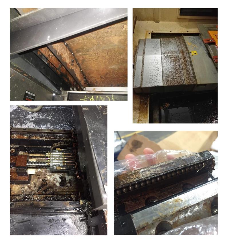 客戶在不規(guī)范使用切削油時(shí),造成機(jī)床部件生銹。