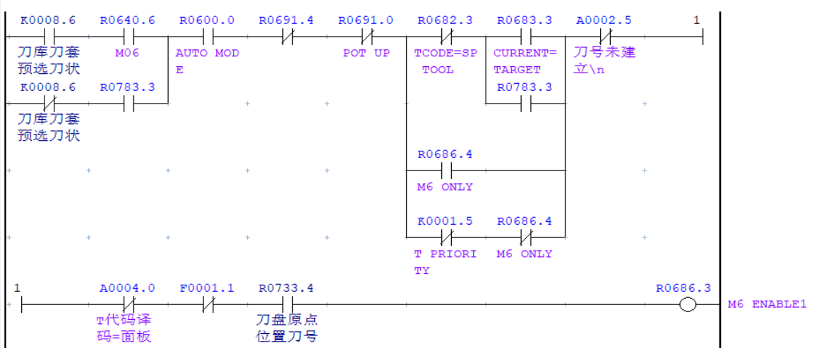 R733.4一致性判斷信號同時也應(yīng)用與自動換刀過程中換刀使能判定,不一致時打斷換刀動作并輸出相對應(yīng)的報警信息。