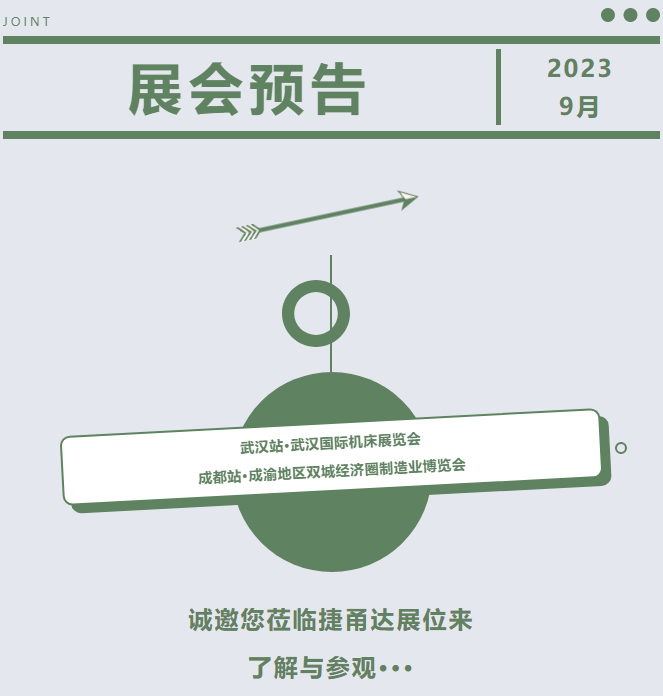 歡迎您到捷甬達(dá)展位來了解與參觀!JM2023第26屆濟南國際機床展覽會;CWIEME2023西部制博會;CCiME2023...