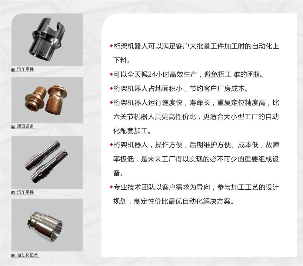 數(shù)控系統(tǒng)、伺服電機及驅(qū)動、減速機、電控柜、桁架導軌支架、夾持單元、上下料盤。